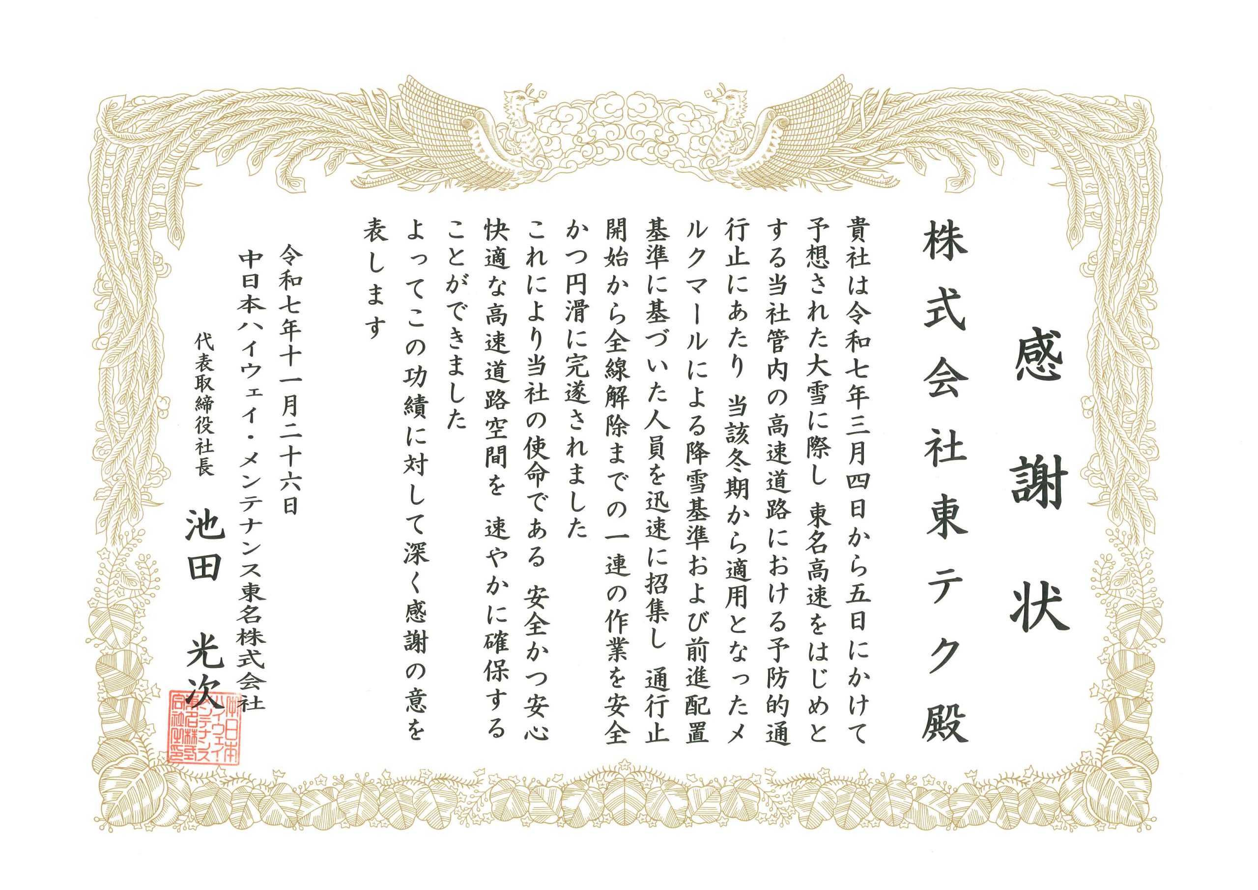 弊社は創立以来、物流・人流を担う重要な社会的インフラの一部である高速道路の維持・管理作業に携わっております。 いつでも、安心してお客様がご利用頂ける高速道路を守れるよう今後も日々精進してまいります。
